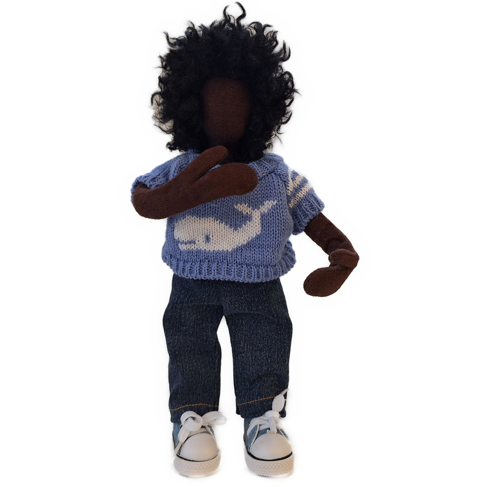 Supercool sieht der Strickpullover mit dem weißen Walfisch aus, der zusammen mit der Jeans ein tolles Bekleidungsset ergibt.