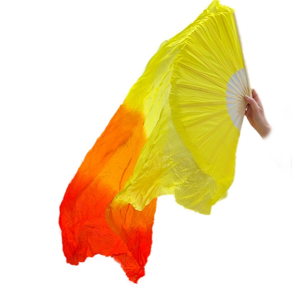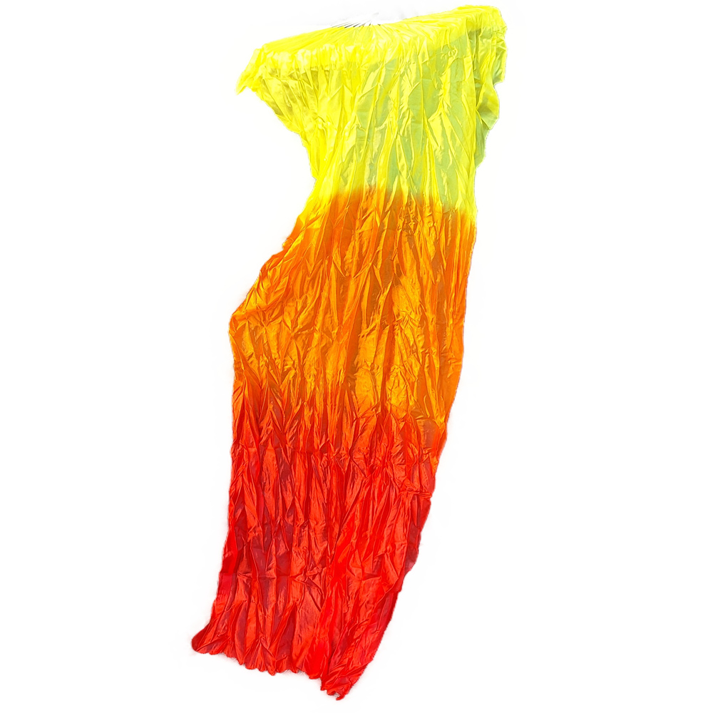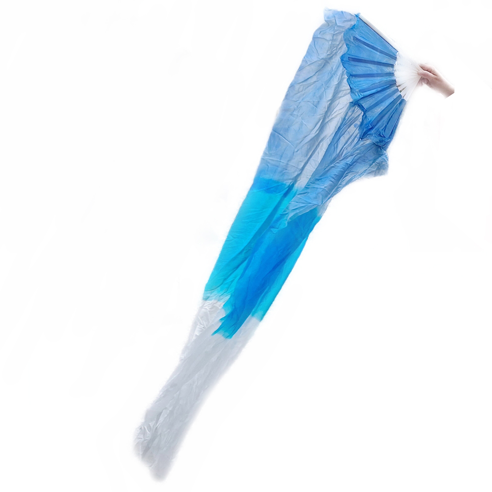 Hübscher Tanzfächer in drei Farbstellungen. Material: Stabiles Polyester, wenig durchscheinend - Griff: 2mm dickes Bambusholz Knitteroptik Kinder lieben diese langen Fächer, mit denen sie sich drehen und den Stoff weit ausladend schwingen können. 190 cm lang inkl. Griff - 80cm Stoffbreite