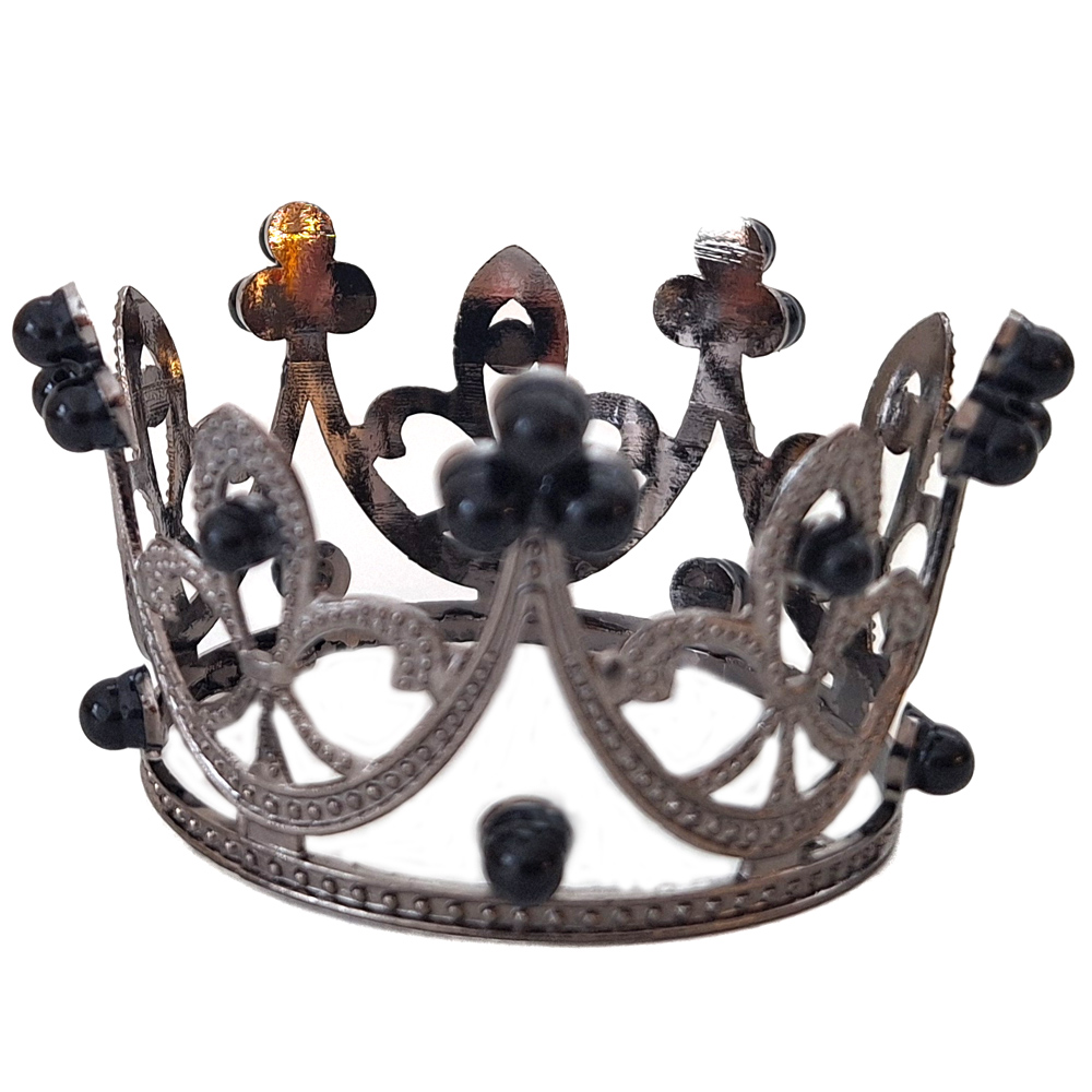 Wer es gern edel aber farblich dezent hat, der ist mit dieser Krone aus sehr dunkler Silberlegierung mit schwarzen Perlen gut beraten.