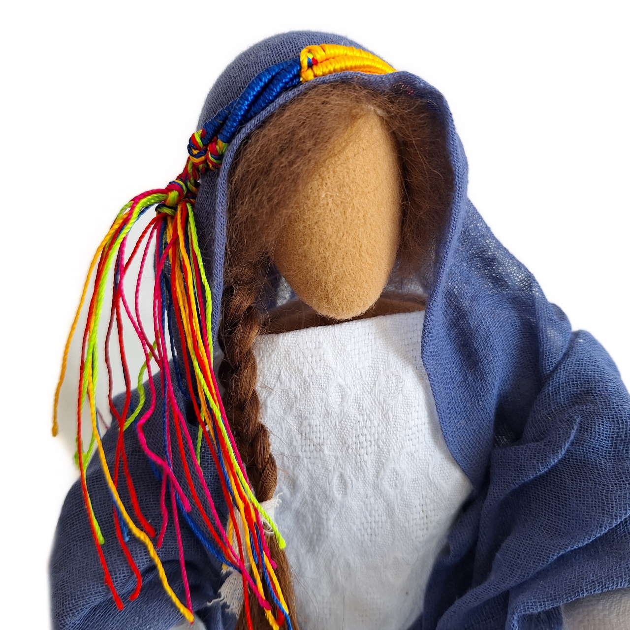 Die frischen Farben der drei bunten handgewickelten und ineinander verdrehten Bänder bringen Farbe ins Figurenspiel, sind aber gleichzeitig dezent genug, dass sie sich mühelos anpassen. Für Frauenfiguren sind sie wunderschön. Wir bieten sie mit passenden Schleiertüchern an. Schleiertuch = 60x30cm handgefärbter Gazestoff. Wählen Sie Ihre Wunschfarbe.