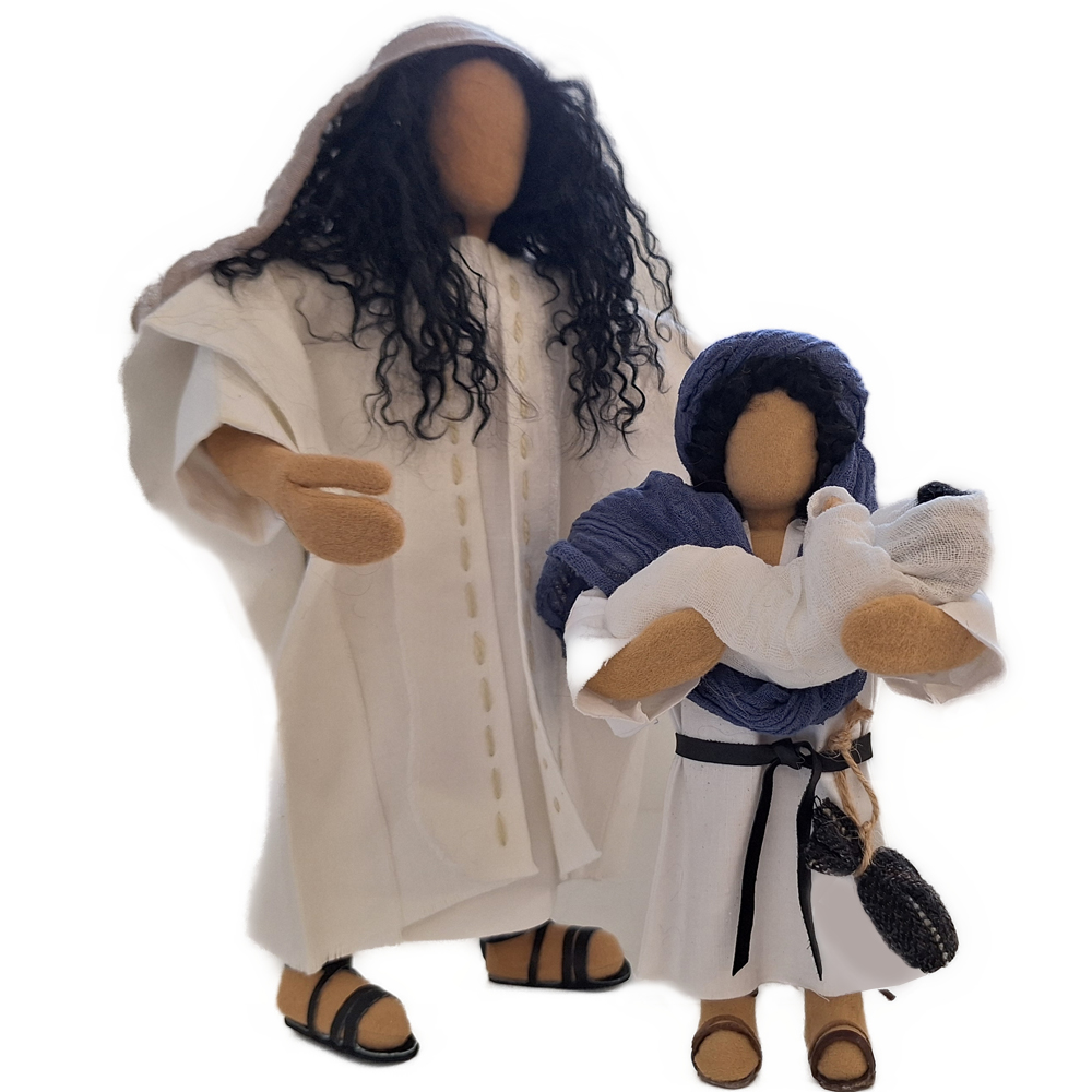 Mit diesen drei Figuren haben Sie einen schönen Grundstock zur Darstellung vieler Geschichten. Das Kind und das Baby können Sie auch anderweitig immer wieder einsetzen.