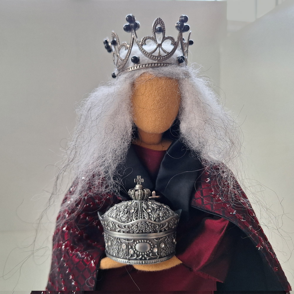 Wer es gern edel aber farblich dezent hat, der ist mit dieser Krone aus sehr dunkler Silberlegierung mit schwarzen Perlen gut beraten.