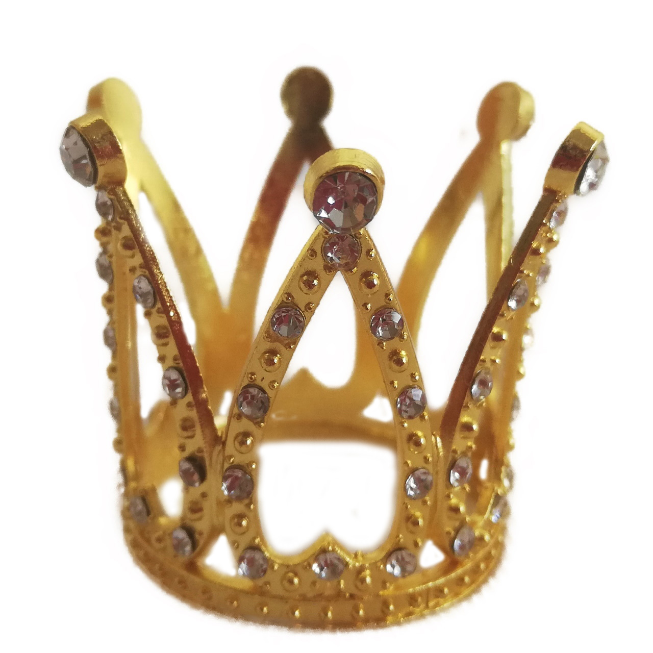 Qualitativ sehr schön gemacht ist diese kleinere Krone. Sie ist aus Metall, also sehr hart und stabil. Zahlreiche Glitzersteine sind händisch eingesetzt. Zur Befestigung am Kopf hat sie zwei Ösen. Sie können Nadeln direkt in den Kopf der Figuren stecken.