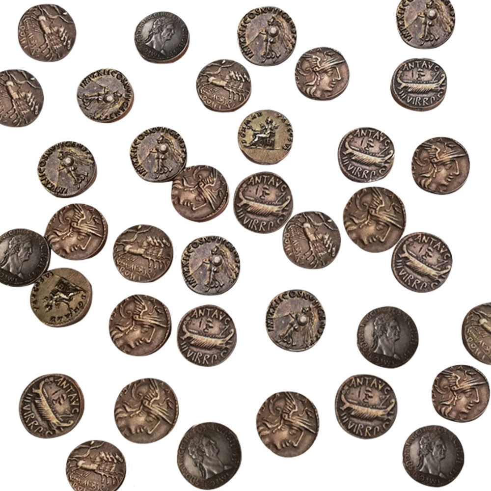 10 Münzen aus Holz mit 2 cm Durchmesser, einseitig mit Motiven echter römischer Münzen bedruckt. Auch erhältlich: * 30 Silberlinge + 1 Ersatz im größeren Lederbeutel - für Judas * 6 Römische Münzen im Lederbeutel - für Zachäus oder Händler Die schönen Münzen haben wir exklusiv für uns in Deutschland herstellen lassen.