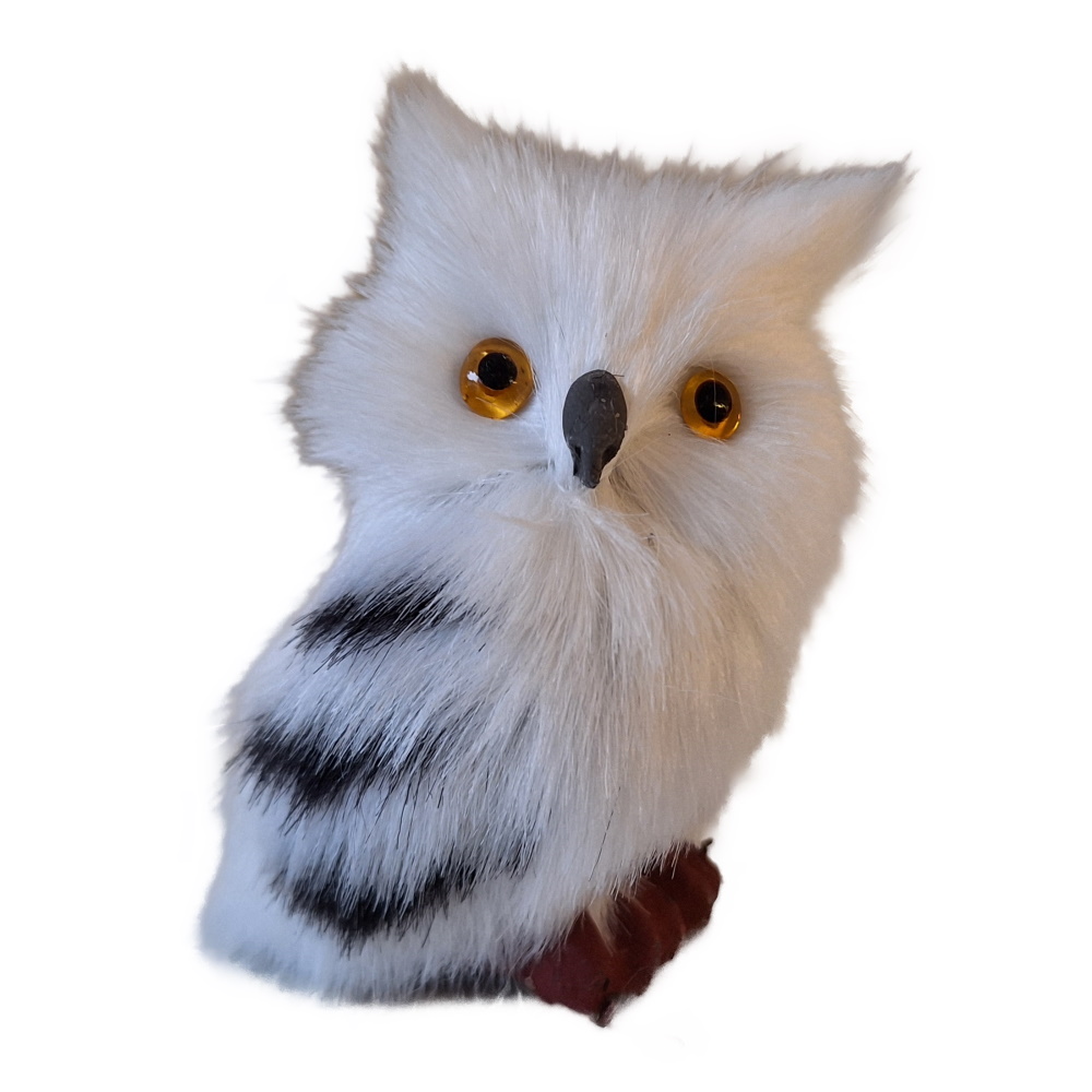Die Eulen sind aus Kunstfell gearbeitet, das aussieht als wäre es echt. Sie sind sehr detailreich, liebevoll und exakt gearbeitet.