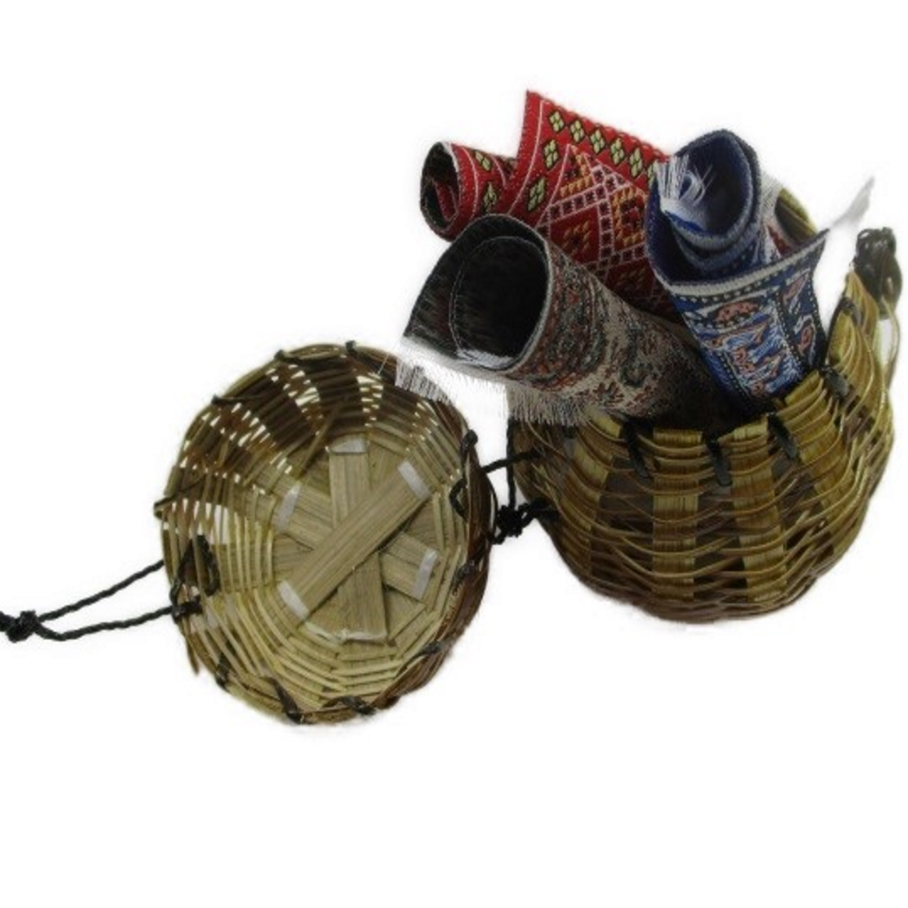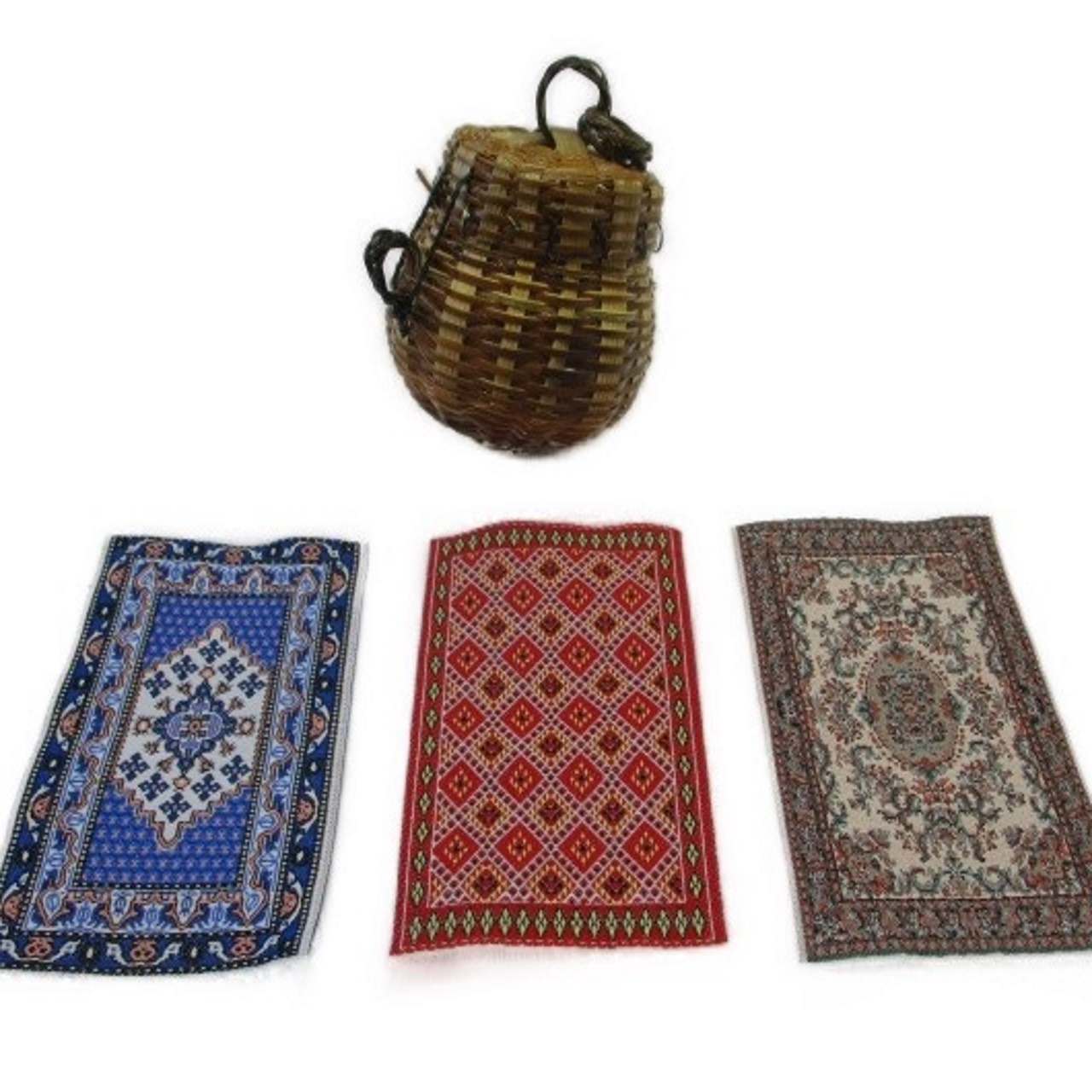 Nett anzuschauen ist der Korb mit den 3 kleinen Webteppichen mit orientalischen Mustern.