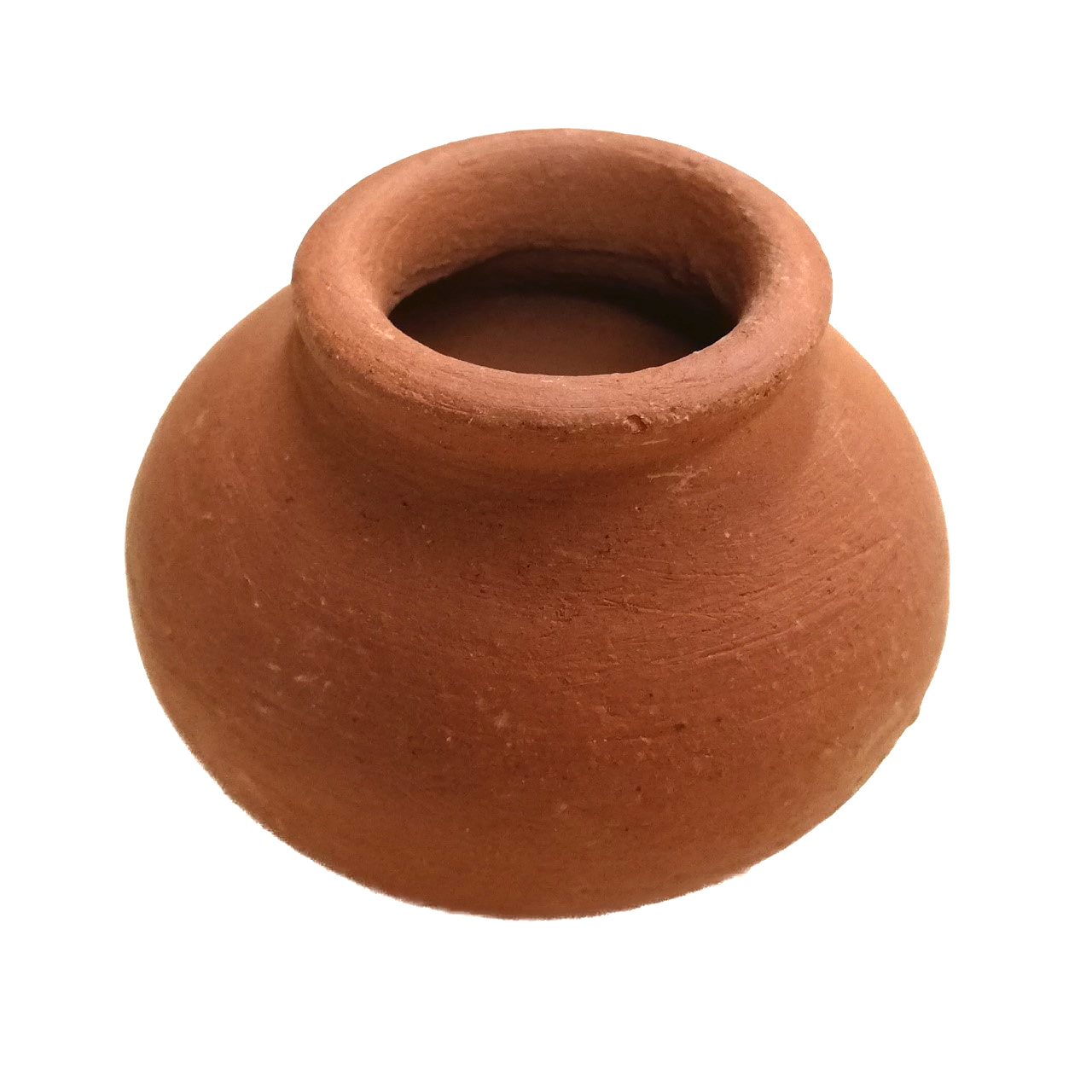 Diese Töpfe sind etwas rustikaler getöpfert. Hierfür wurde der Ton mit winzigen Scherbenstückchen vermischt, damit die Oberfläche rauh bleibt und das Tongut alt aussieht. Diese Töpferwaren passen äußerst gut zu unseren Figuren. Dieser Krug ist 4,5cm hoch und hat einen schön geschwungenen Rand. Weil alle Töpfe handgemacht sind, hat der eine eine größere Öffnung, der andere eine kleinere, manche haben ein Füßchen, andere nicht. Reine Handarbeit eben!