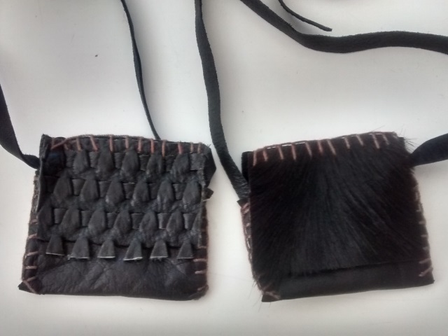 Sehr wirkungsvoll sind die kleinen handgenähten Taschen aus echtem Leder * Verschiedene Modelle - mit besonderem Flechtleder, Musterprägung oder Fell * Mit liebevollen Handstichen in braunem Kontrastgarn * Ca. 5 x 6 cm plus Lederriemen * Reell befüllbar